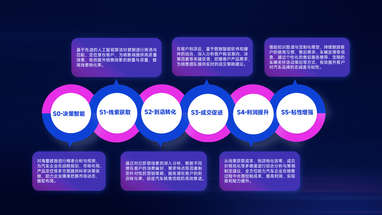 通过拓宽潜在客户来源、、优化线索分配并提高到店转化率,,,以增强销售效率。。。。同时,,,利用线索数据不断优化分析模型,,,,有效提升转化率,,扩大营销影响力。。。。